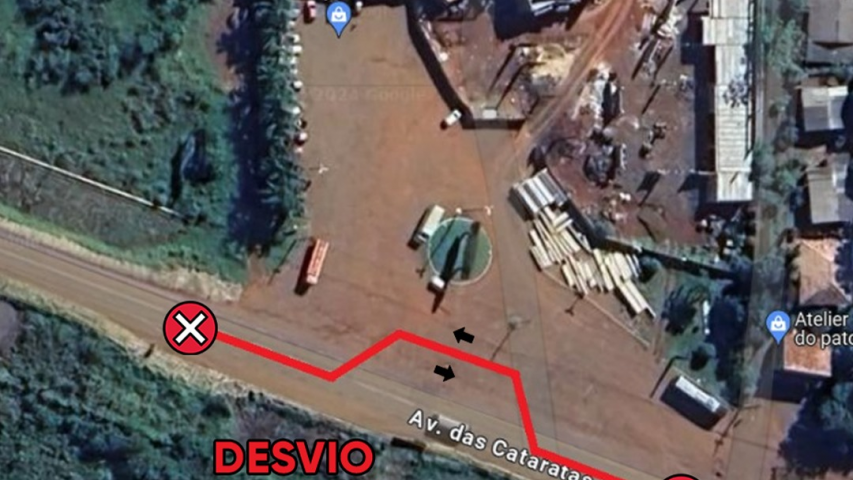 - A nova estrutura e o desvio provisório ficam em frente à loja Artesanato e Chocolate Caseiro Três Fronteiras. Mudança no trânsito começa na próxima segunda-feira (18).