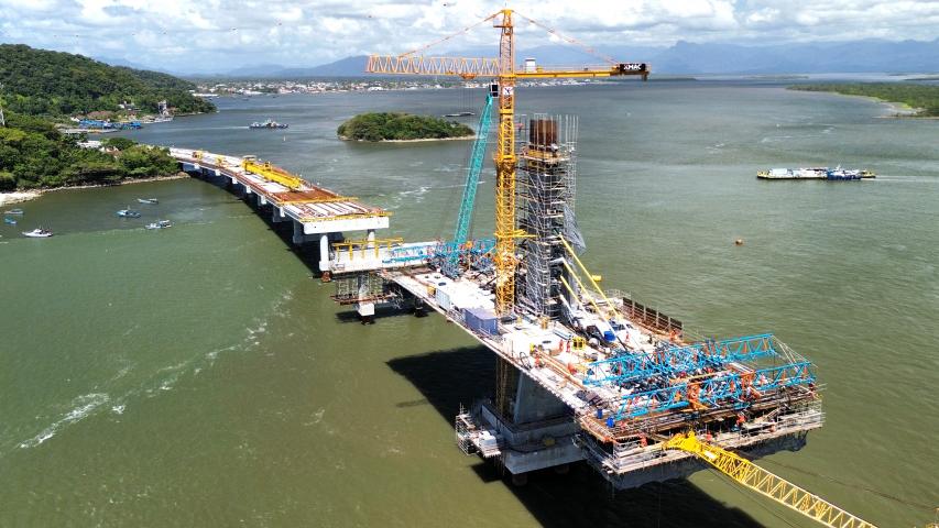 - A operação é parte do processo construtivo do chamado trecho estaiado, que terá 320 metros de extensão, incluindo um vão central de 160 metros sobre o canal de navegação, conforme o projeto. Nos acessos, o destaque vai para o rebaixamento do morro no acesso ao centro de Guaratuba.