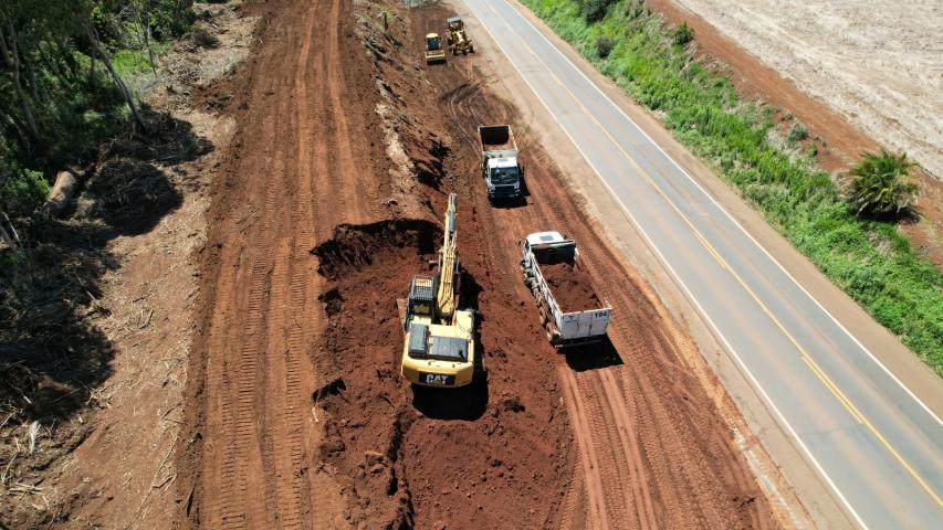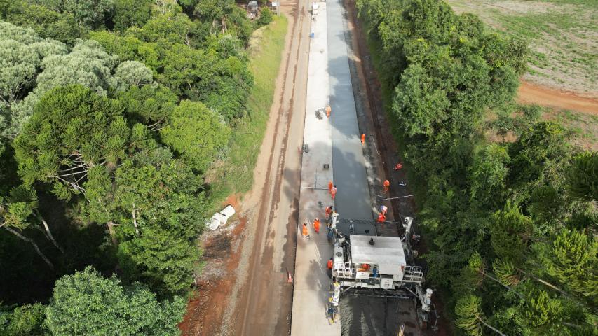 - Trecho de 11,95 quilômetros começou a receber os serviços de sub-base e base da nova pista, utilizando o solo-cimento. Investimento na obra é de R$ 56,9 milhões. Os trabalhos atingiram a marca de 27,21 % na medição mais recente, de março, marcando um investimento de R$ 15,4 milhões até o momento.