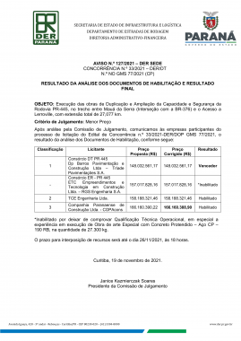 13:59 DER divulga resultado final da licitação de conservação das rodovias do Anel de Integração Consórcio e empresa fo