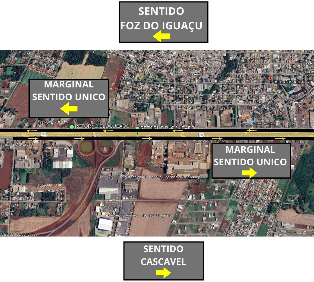 Vias marginais da BR-277 têm alteração de tráfego na região de Foz do Iguaçu