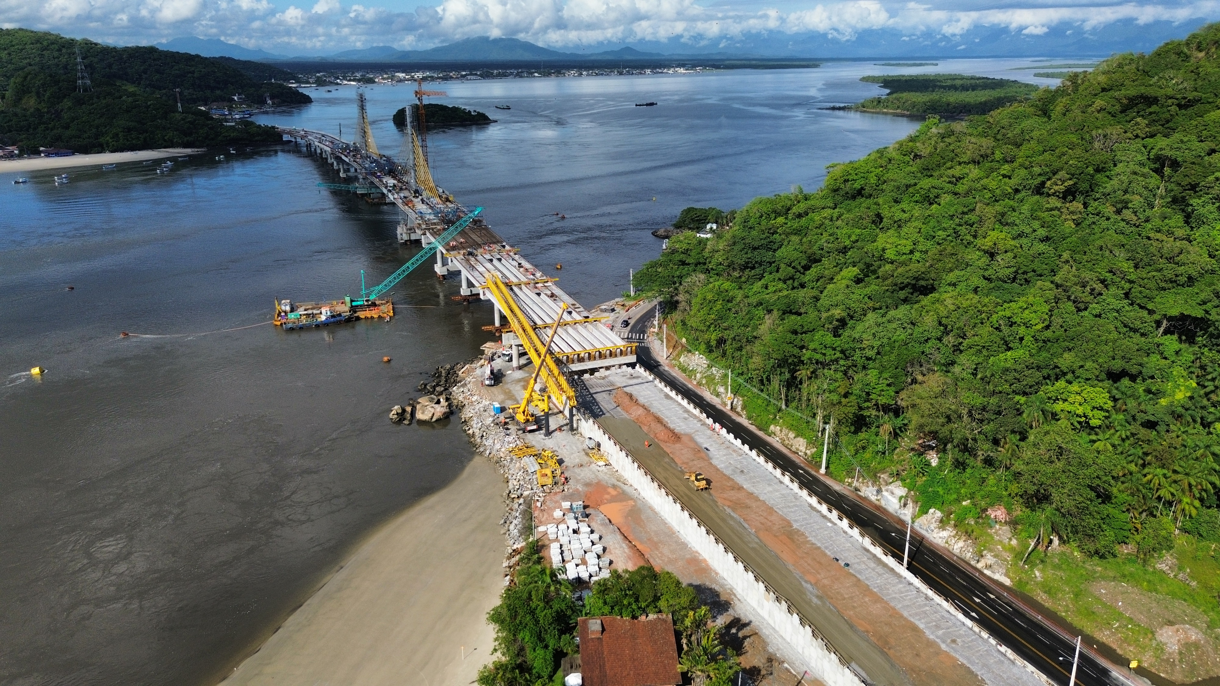 Com trecho estaiado quase pronto e 160 vigas lançadas, Ponte de Guaratuba atinge 91% de execução 10/02/2026 - 14:30