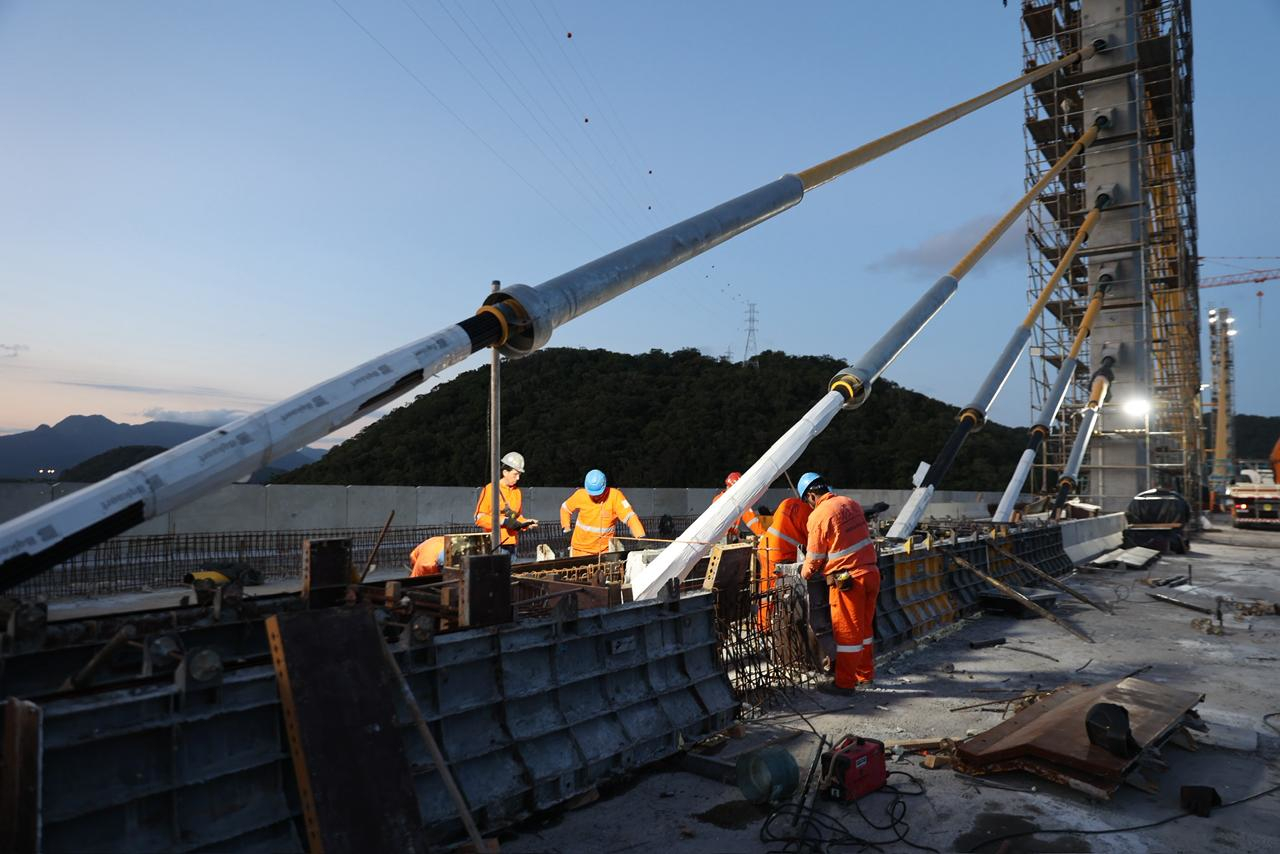 Essa concretagem iniciada por volta das 19h30 marcou o momento em que os dois lados da estrutura estaiada, que avançaram separadamente a partir dos apoios 4 e 5, se encontraram e passaram a formar uma única estrutura contínua com o trecho pré-moldado.