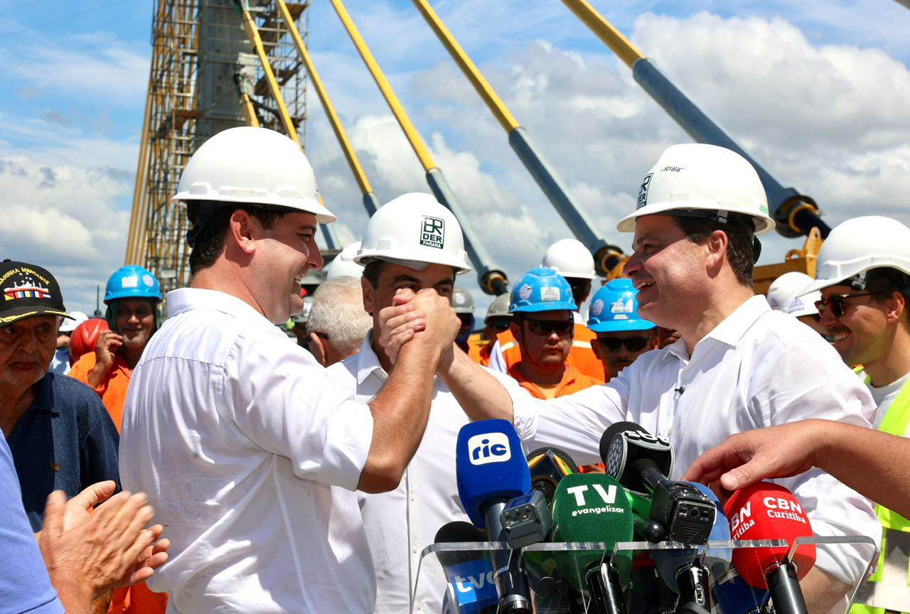 "Essa é uma obra emblemática e simbólica. Trabalhamos arduamente nesse projeto e agora completamos a conexão. Construir ponte é um desafio e vencemos muito bem esse desafio", afirmou. “Nós tínhamos um prazo desafiador e estamos cumprindo esse prazo. Enquanto o mundo briga, o Paraná trabalha. Muito obrigado aos trabalhadores dessa obra”.