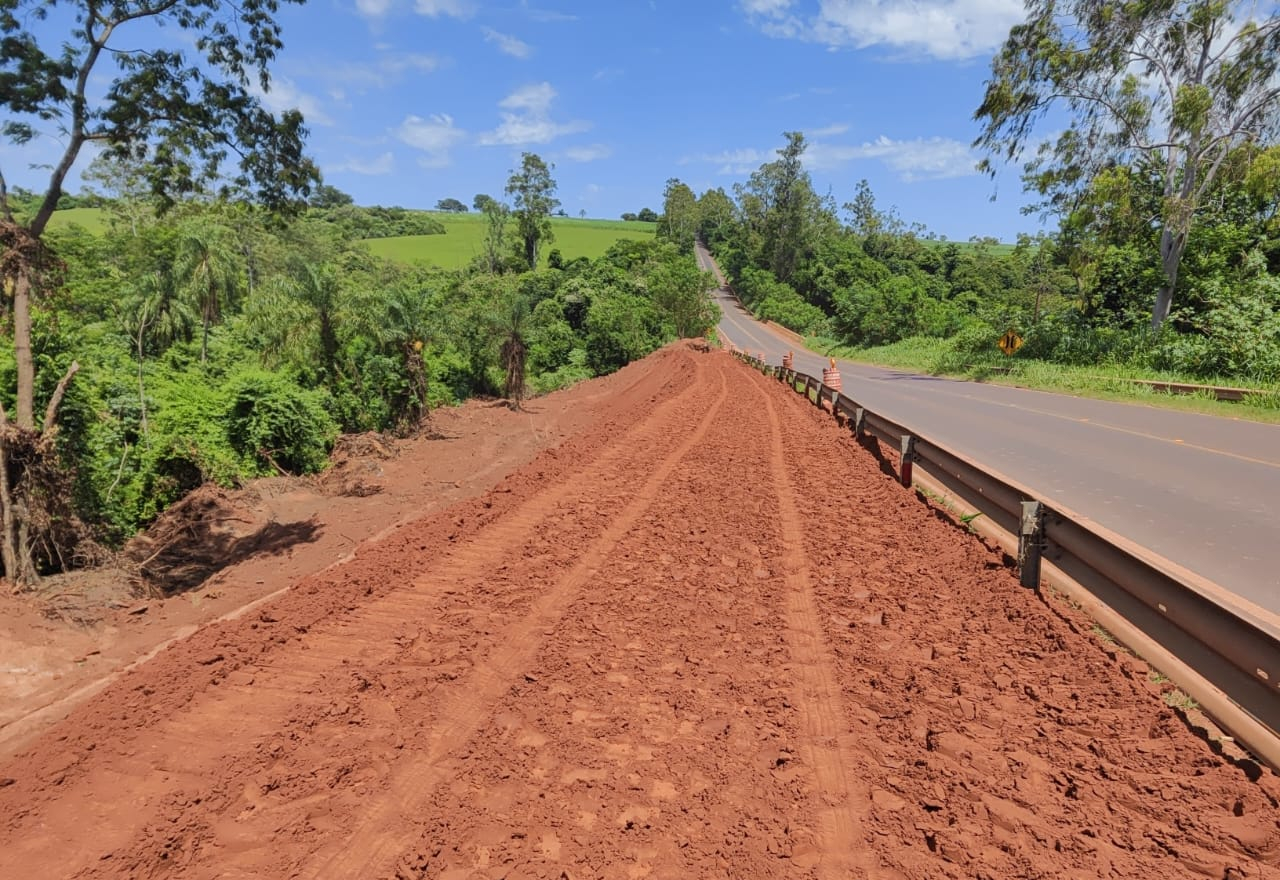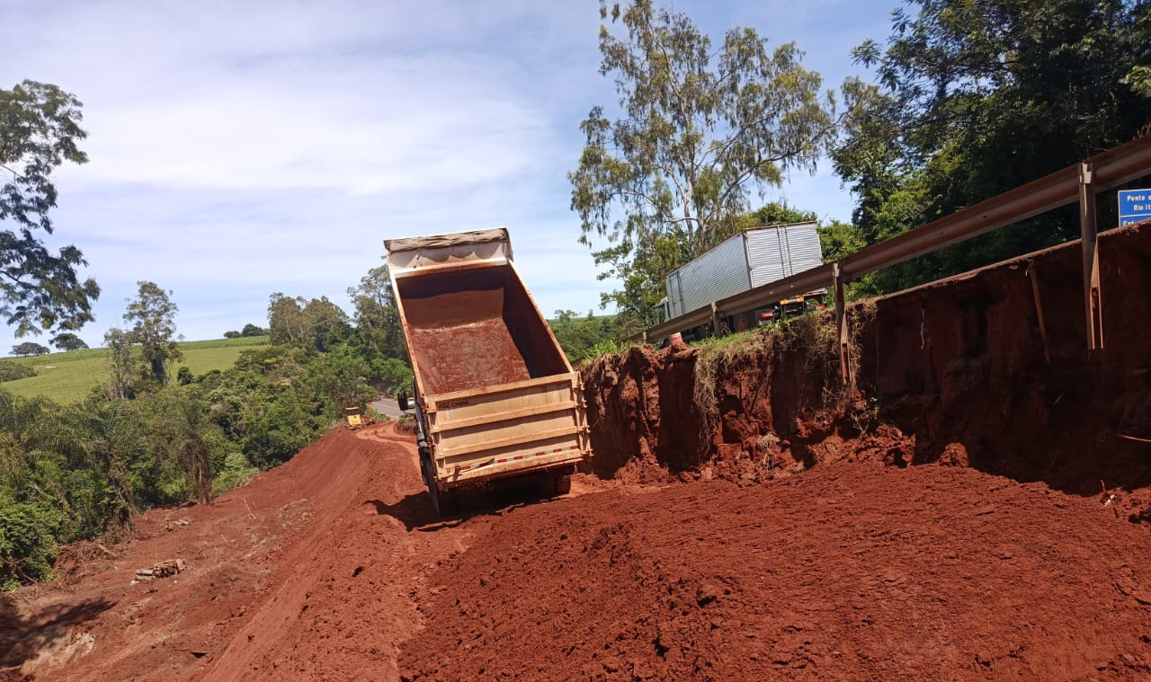 A rodovia conta com a devida sinalização provisória, e os condutores devem seguir com velocidade reduzida pelo local e atenção redobrada, garantindo a segurança de todos.