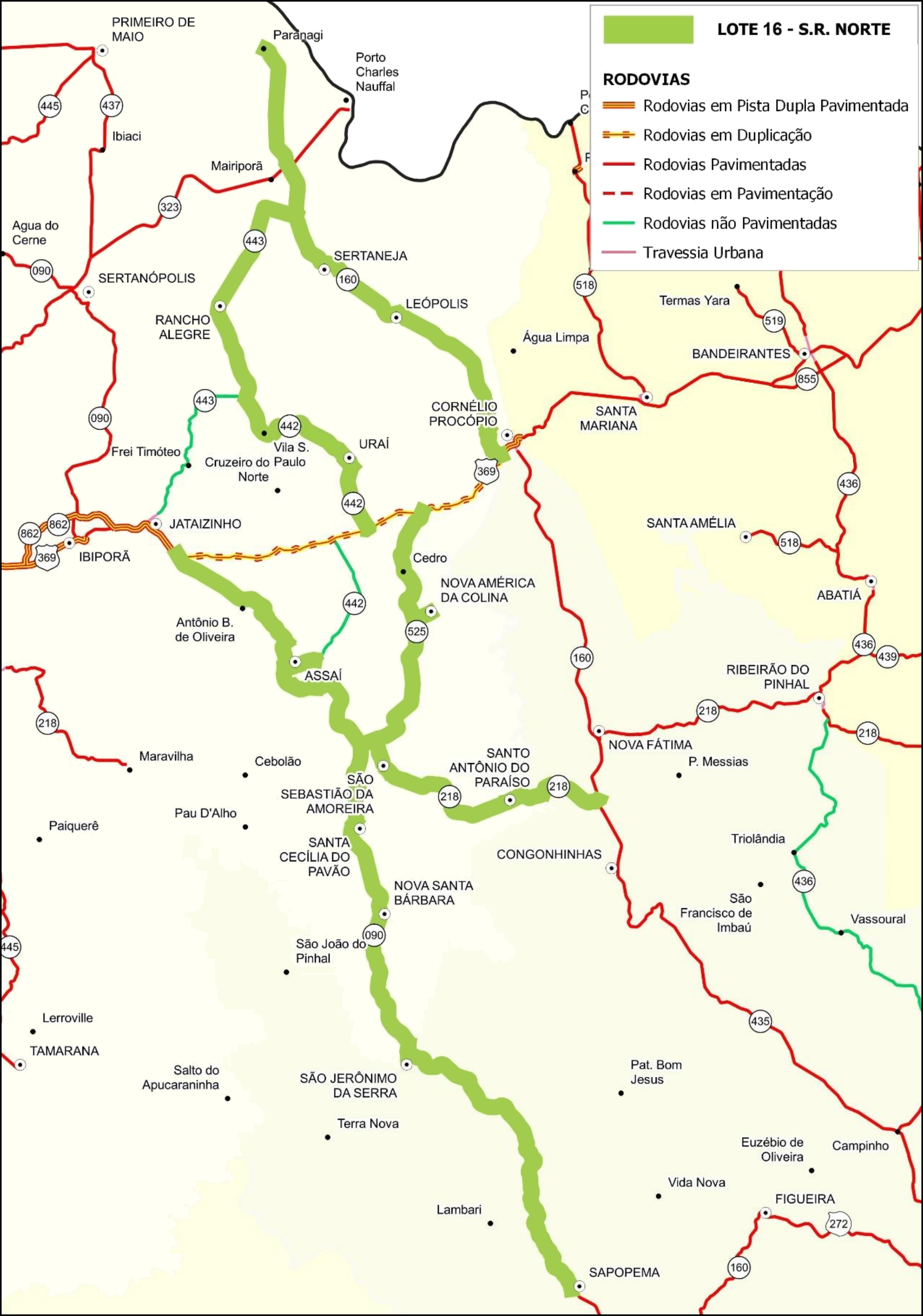 Esse lote atende trechos das rodovias PR-090, PR-160, PR-218, PR-442, PR-443, PR-525 e PR-526, beneficiando os municípios de Assaí, Congoinhas, Cornélio Procópio, Jataizinho, Leópolis, Nova América da Colina, Nova Fátima, Nova Santa Bárbara, Rancho Alegre, Santa Cecília do Pavão, Santo Antônio do Paraíso, São Jerônimo da Serra, São Sebastião da Amoreira, Sapopema, Sertaneja e Uraí.