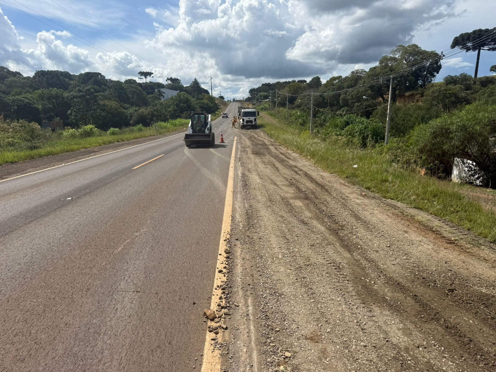 O Departamento de Estradas de Rodagem do Paraná (DER/PR), autarquia da Secretaria de Infraestrutura e Logística (SEIL), está recompondo os acostamentos da PR-170 no perímetro urbano de Pinhão, na região Centro-Sul. Os serviços são realizados por meio do seu novo Programa de Manutenção e Conservação de Rodovias (ProMAC).