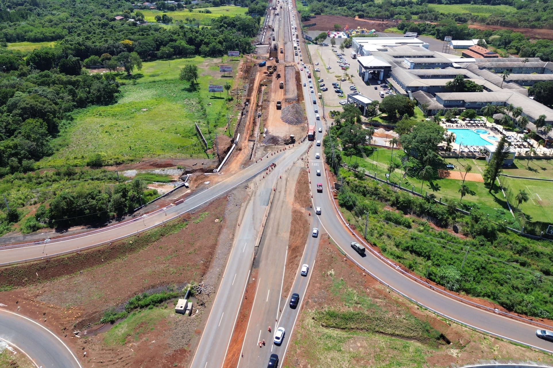 A duplicação da Rodovia das Cataratas (BR-469) em Foz do Iguaçu, na região Oeste do Paraná, chegou a 78,24% na medição mais recente, de dezembro. Os serviços estão concentrados na execução da nova pista central duplicada e na conclusão do viaduto de acesso ao Aeroporto Internacional de Foz do Iguaçu, única obra de arte especial ainda não concluída deste projeto.
