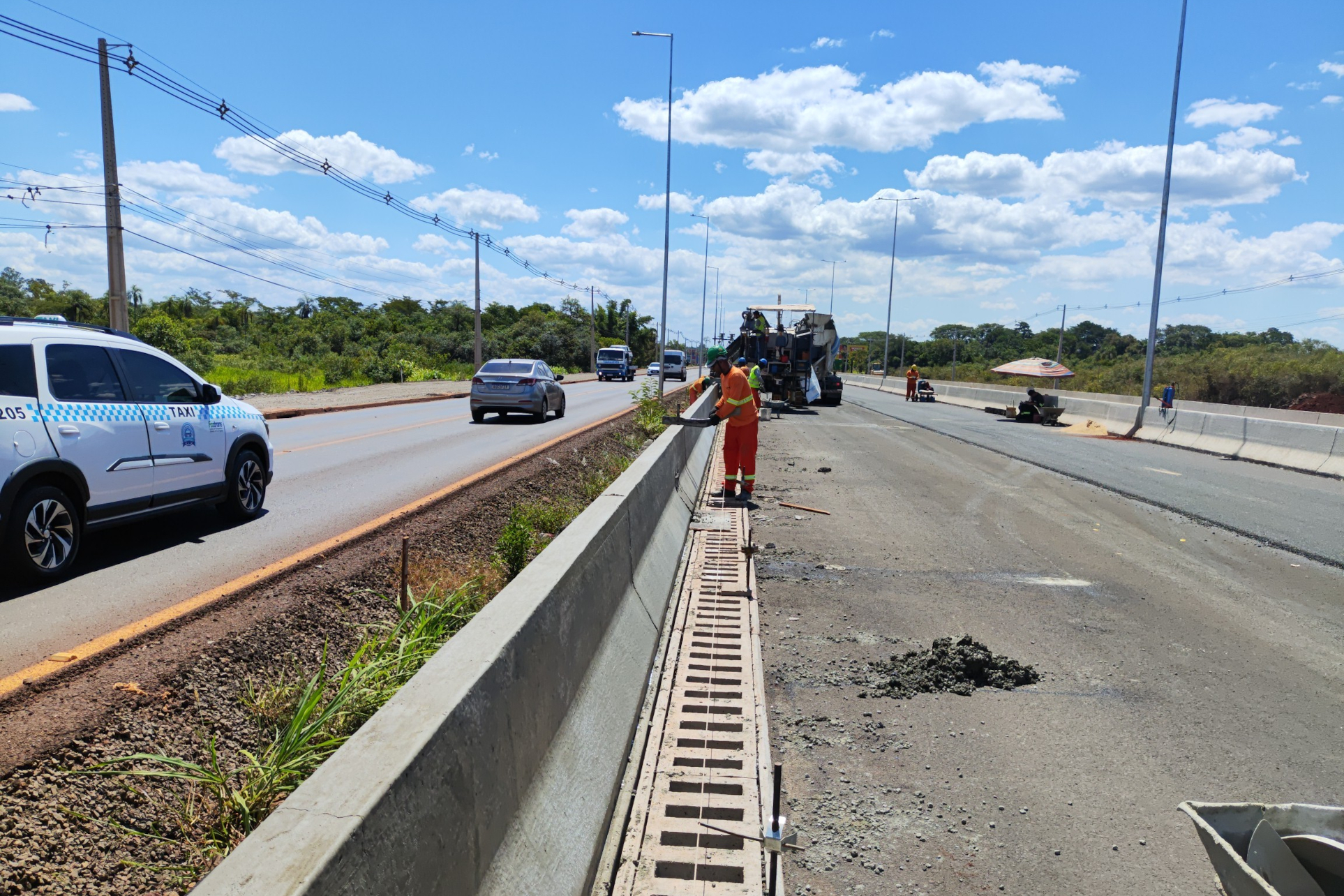 Também estão em andamento os serviços de pavimentação das novas vias marginais, implantação do sistema de drenagem de águas, galerias e passa-faunas, além de sinalização horizontal, sinalização vertical e instalação de dispositivos de segurança viária, entre outras melhorias.