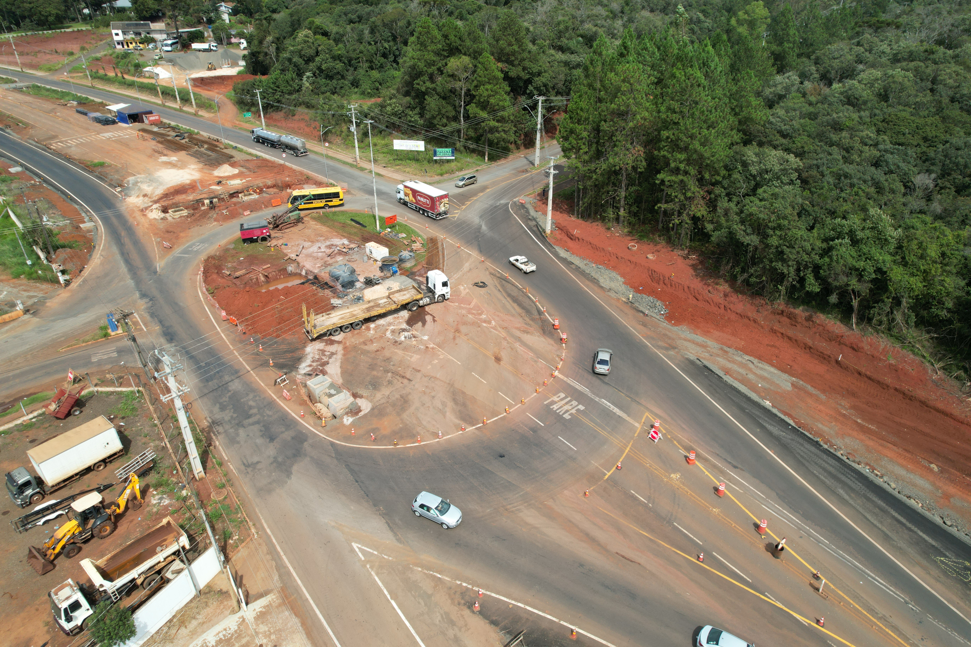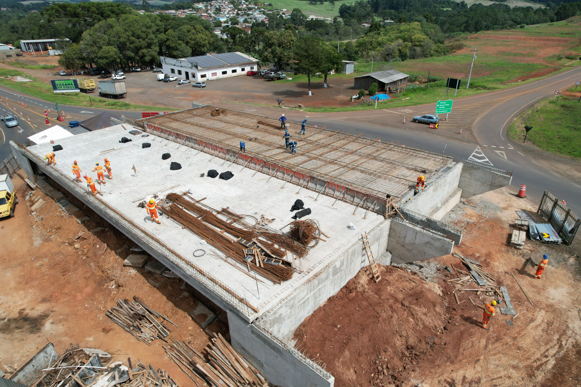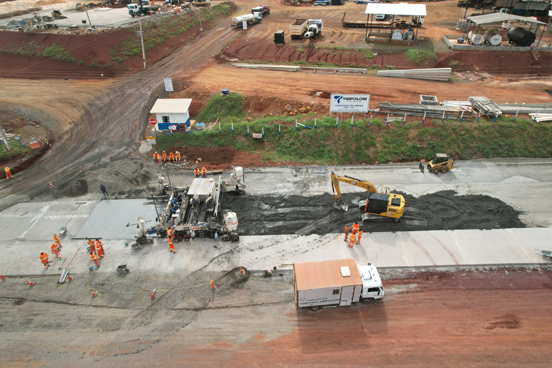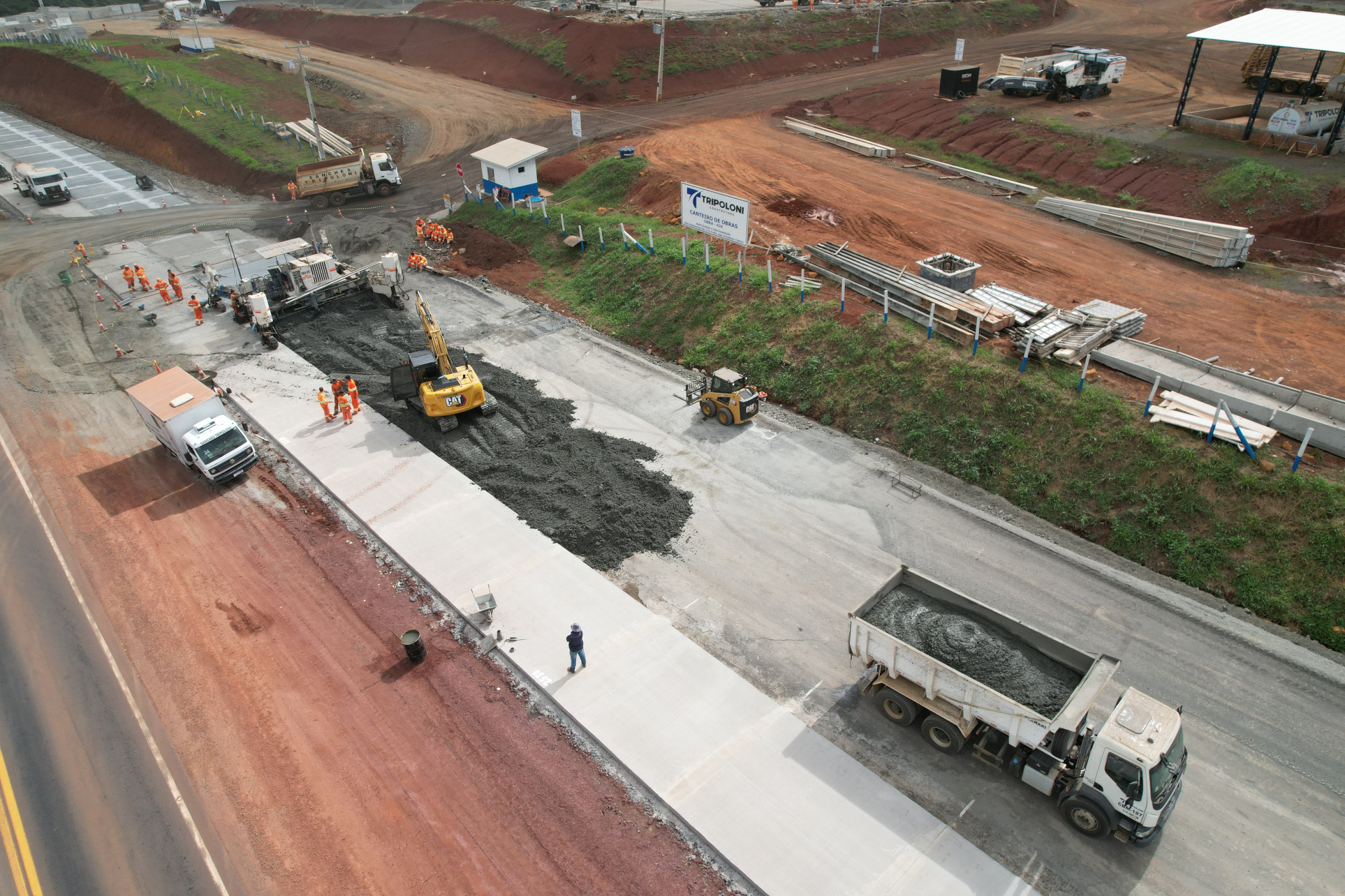 A implantação da nova pista em pavimento rígido de concreto continua avançando em ritmo acelerado, enquanto são realizadas melhorias no pavimento asfáltico da pista existente, que será aproveitada como base para uma camada de pavimento de concreto. Esta técnica de restauração é conhecida como whitetopping, e tem sido empregada com sucesso pelo DER/PR em rodovias de todo o Paraná.
