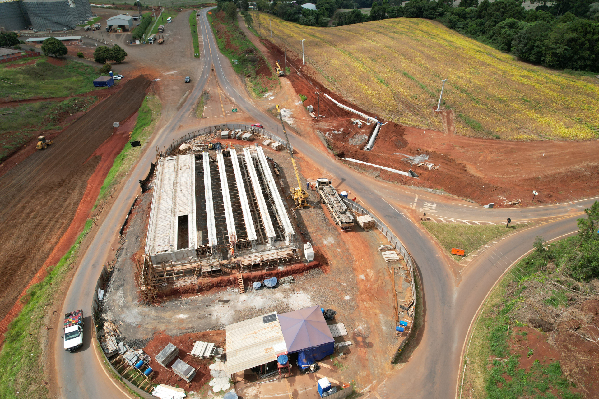 Continua como serviço mais avançado a construção das obras de arte especiais (OAE) do trecho, que incluem um viaduto na interseção da PRC-466 com a PR-239 e a PR-460 em Pitanga, outro viaduto no entroncamento da PRC-466 com a PR-456 (acesso para Santa Maria do Oeste), nas novas pontes sobre o Rio Carazinho e sobre o Rio Bonito, além da nova passarela para pedestres em Pitanga. Ainda será construído um terceiro viaduto, também em Pitanga, no entroncamento com a Avenida Universitária.
