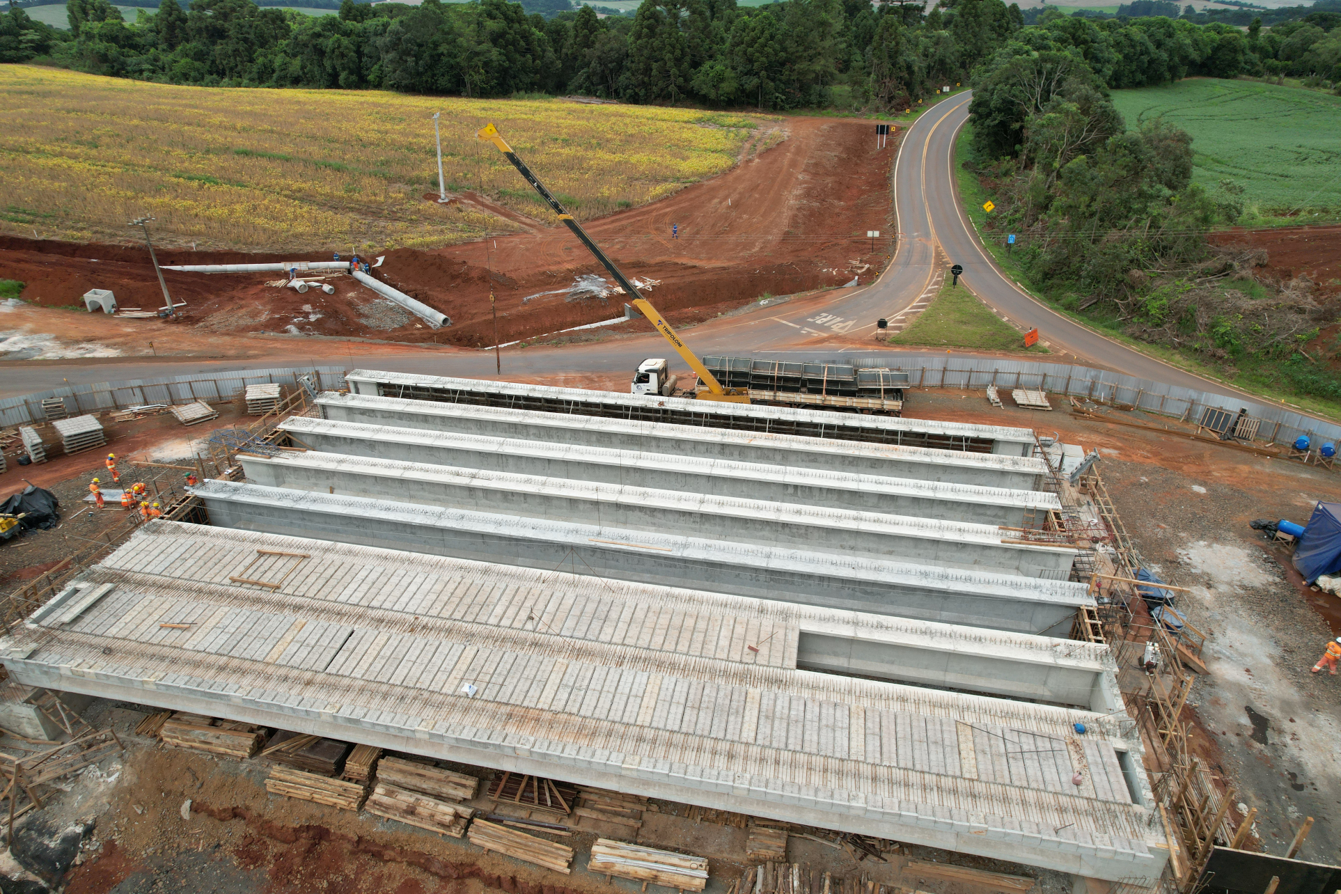 Obras continuam avançando com a construção de novos viadutos e pontes, além da nova pista em pavimento rígido de concreto e recuperação da pista existente.