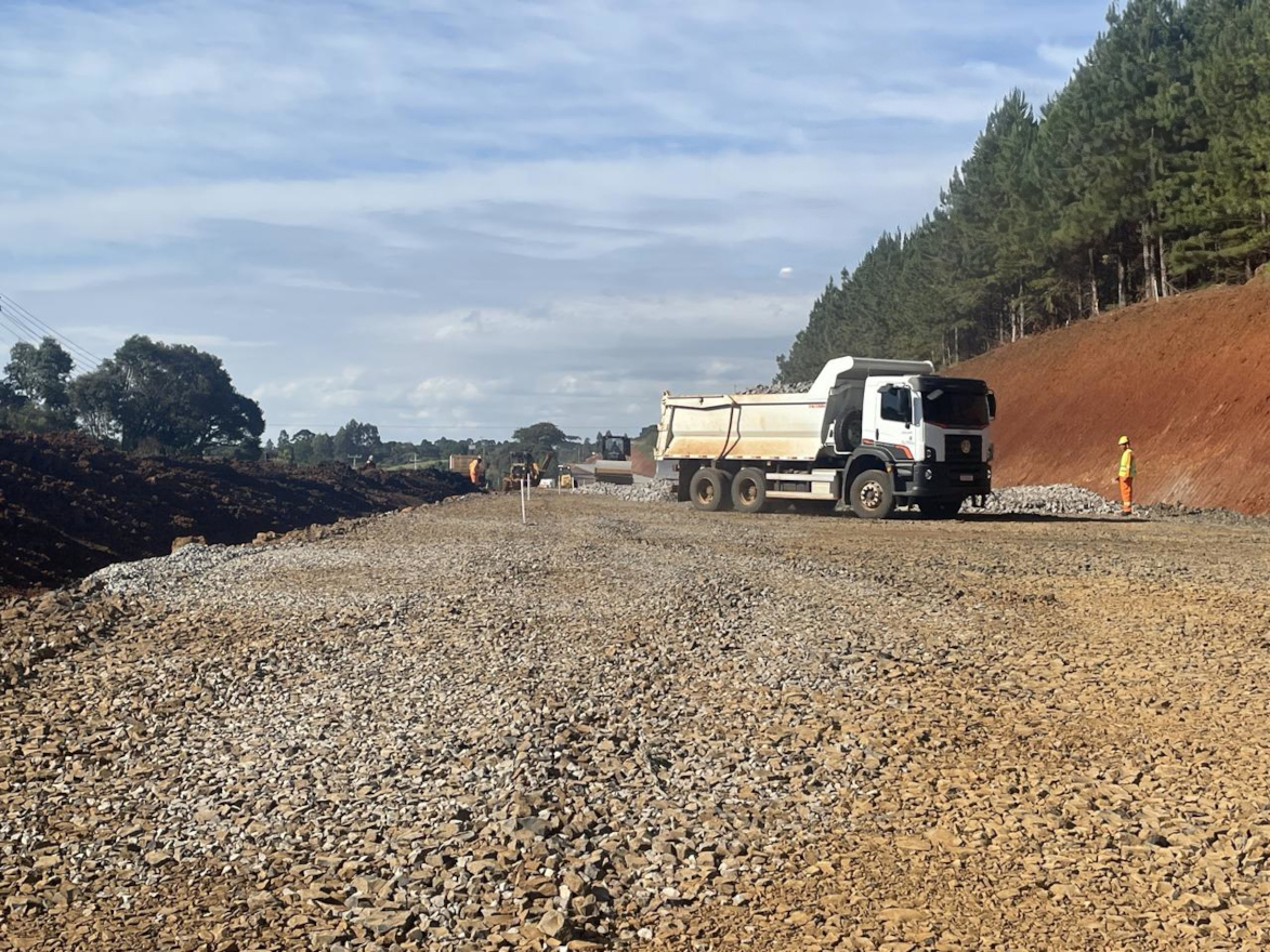 A terraplenagem é o serviço mais avançado, sendo marcada por várias detonações de rochas que estão no caminho da nova pista. As operações são de pequeno porte, garantindo que não causem danos à pista existente ou à rede elétrica próxima.