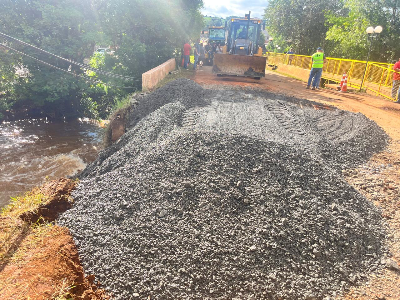 O Departamento de Estradas de Rodagem do Paraná (DER/PR) e a Prefeitura Municipal de Goioxim, na região Centro-Sul, realizaram a recuperação emergencial do acesso à ponte sobre o Rio Juquiá, na PR-364. O local sofreu danos durante as fortes chuvas desta semana, que castigaram a região.