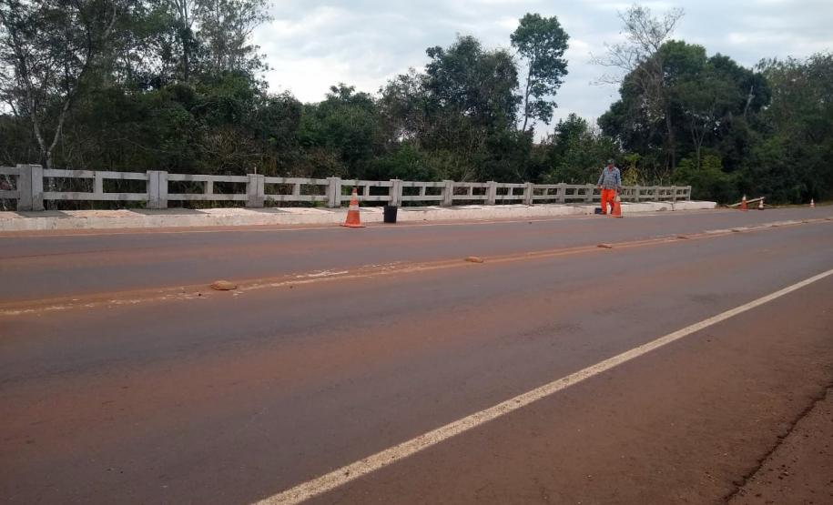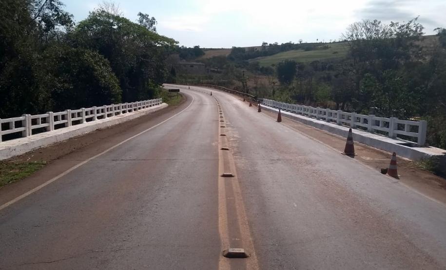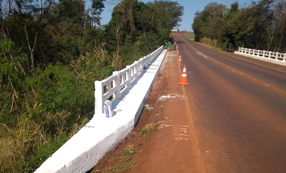 Outra obra em andamento na região é a recuperação da ponte sobre o Rio dos Padres, na PR-239, próximo ao município de Jesuítas. A estrutura, que havia sido danificada em acidente, recebe investimento de R$ 72,5 mil para reparos na ala de concreto para drenagem, com instalação de tirantes de aço para ancoragem da estrutura, passagem para pedestres em concreto armado e instalação de guarda-corpos.
