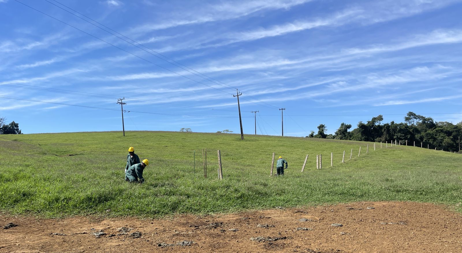 Outra frente de trabalho também está realizando a recomposição e instalação das cercas que delimitam a faixa de domínio da rodovia e os lotes lindeiros.