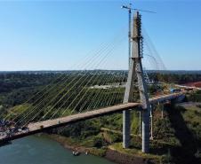 A obra da nova Ponte da Integração Brasil-Paraguai, entre Foz do Iguaçu, na região Oeste do Estado, e Presidente Franco, atingiu 86% de execução em junho – o investimento até o momento é de R$ 205 milhões. A nova ligação entre os países é resultado da parceria entre Governo do Paraná, governo federal e a Itaipu Binacional, com a hidrelétrica responsável pelos recursos empregados. O Departamento de Estradas de Rodagem do Paraná (DER/PR) executa a obra, em ambas as margens.