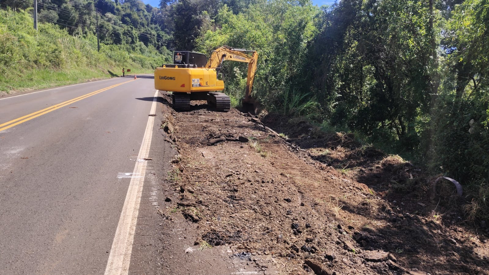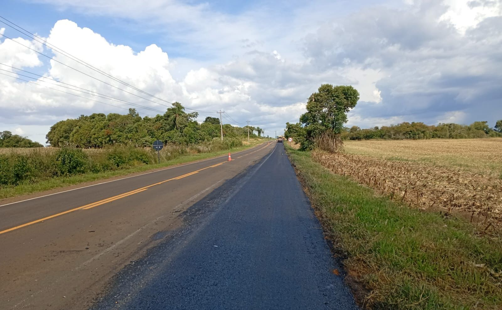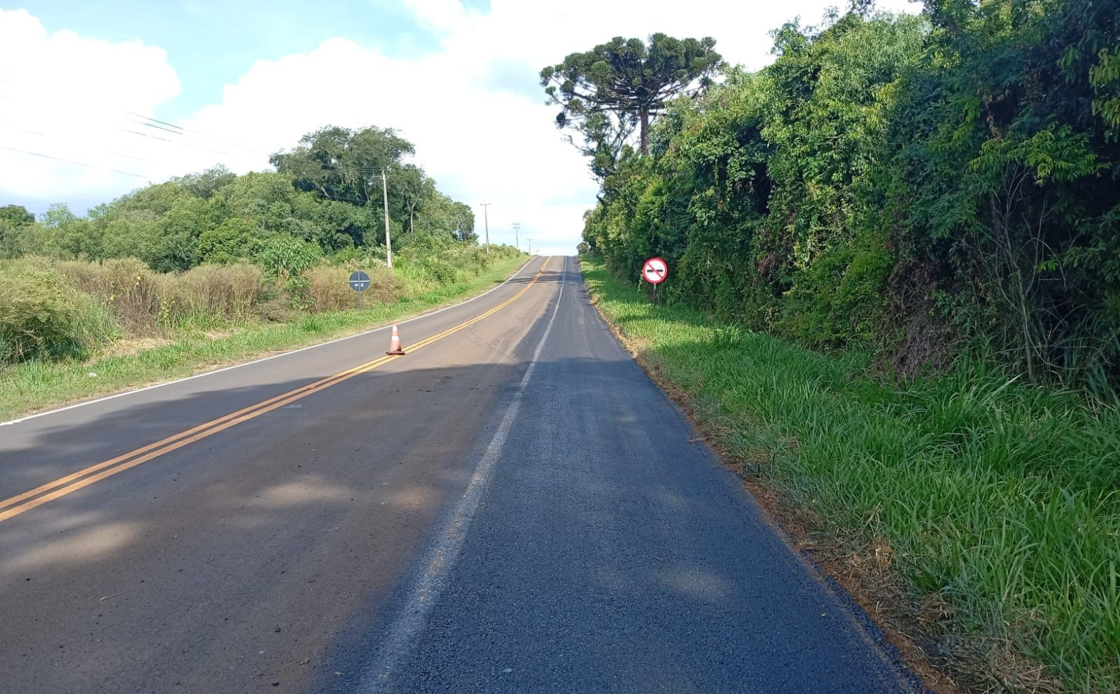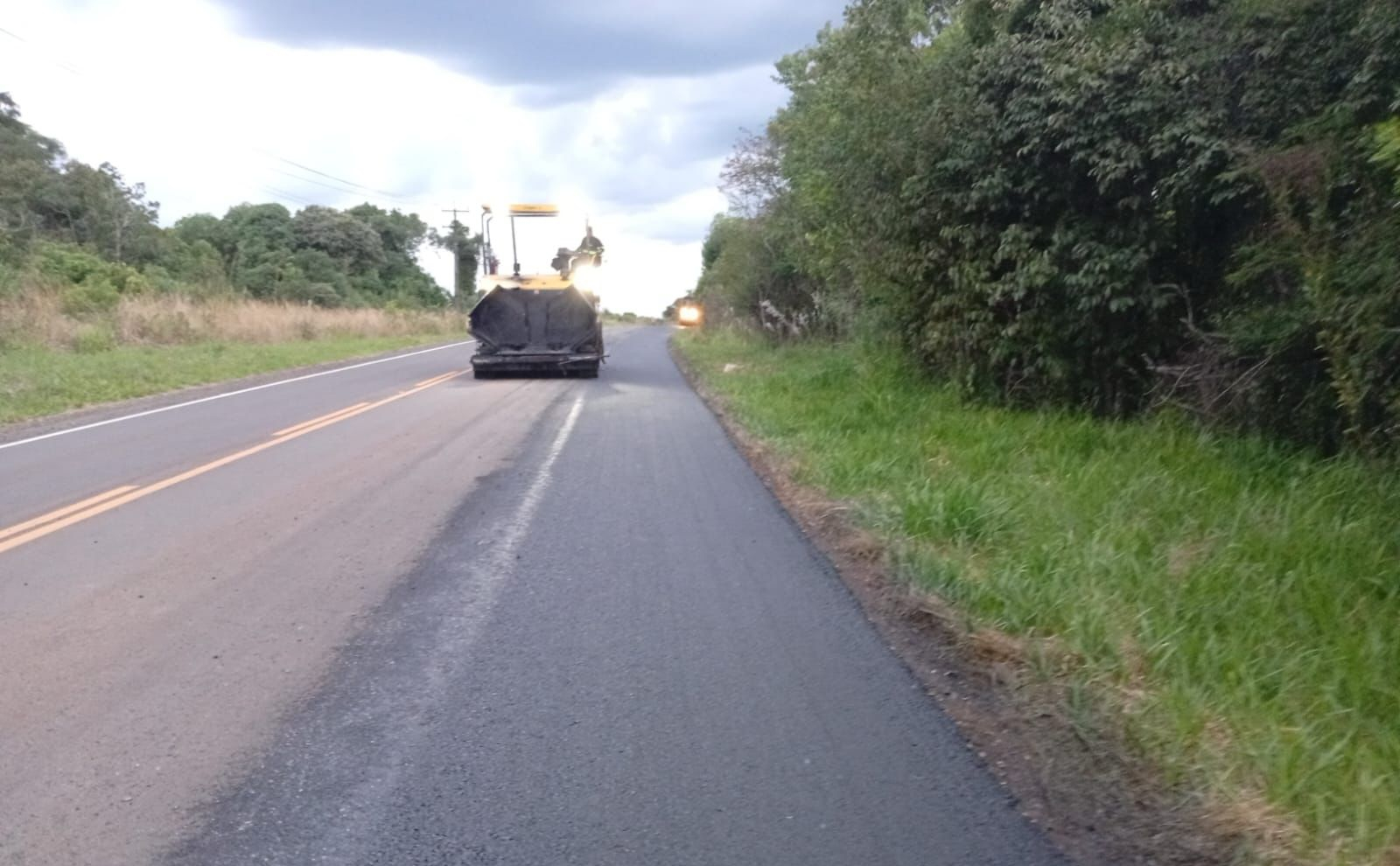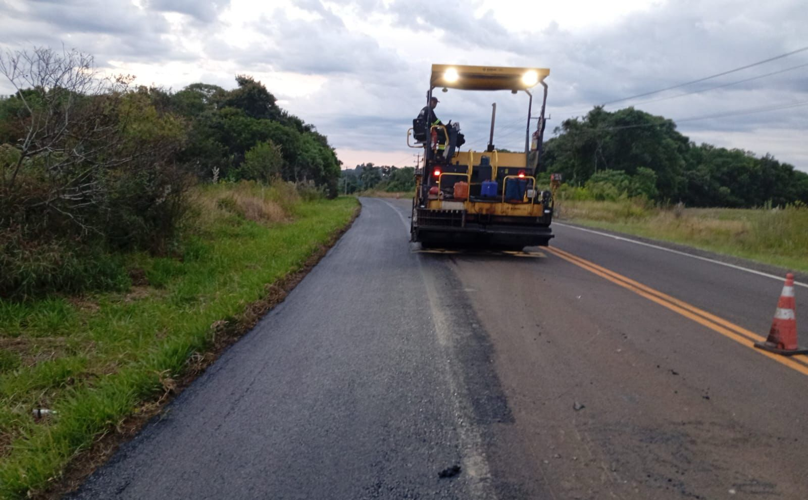 O trecho, que liga o município à BR-373 e à PR-459, está recebendo principalmente a recomposição dos acostamentos, com fresagem do pavimento antigo e execução de nova camada de concreto asfáltico usinado a quente (CAUQ), eliminando degraus e garantindo mais segurança para os usuários.