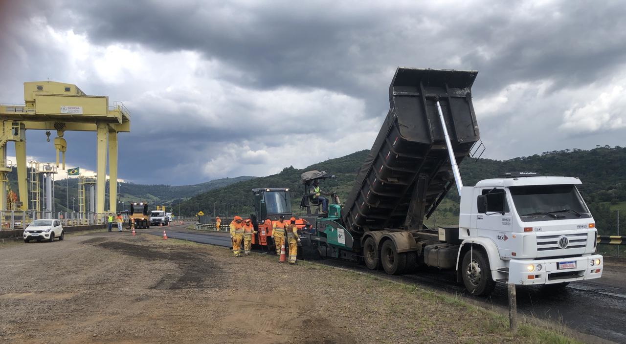 PR-170 passa por melhorias perto da Usina Hidrelétrica Governador Bento Munhoz da Rocha Netto, com reperfilagem da pista realizada por novo programa de conservação.
