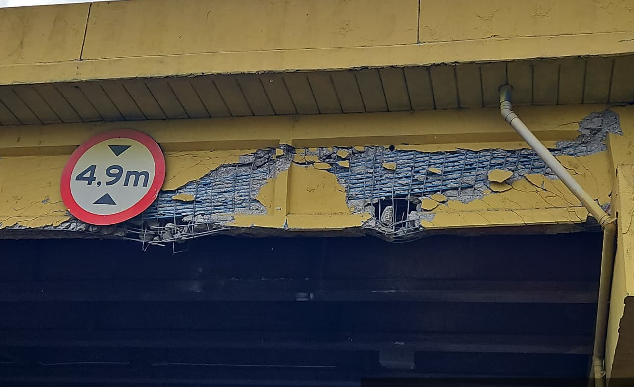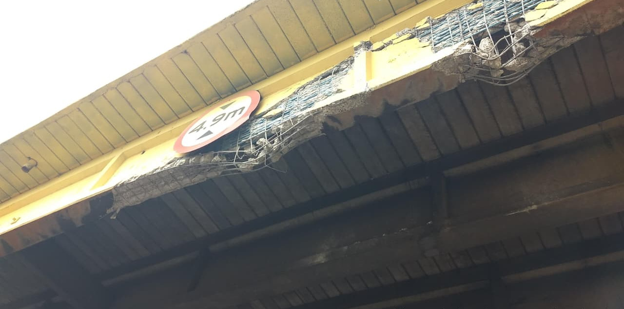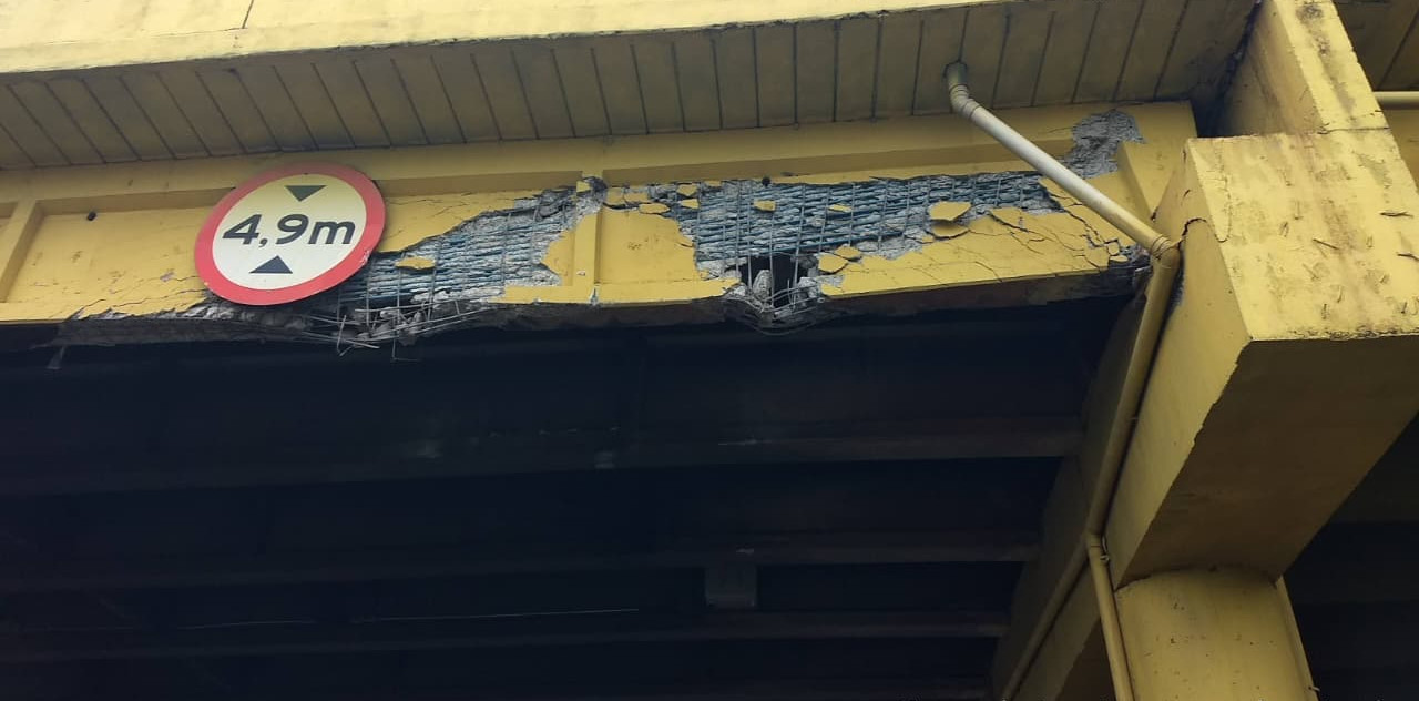 A rodovia terá faixas bloqueadas na passagem inferior do viaduto no km 0+190. Medida é necessária para recuperar dano causado por colisão de caminhão contra a estrutura.